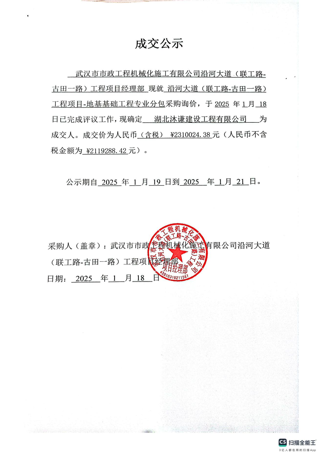 沿河大道(聯(lián)工路-古田一路)工程項(xiàng)目-地基基礎(chǔ)工程專(zhuān)業(yè)分包成交公示