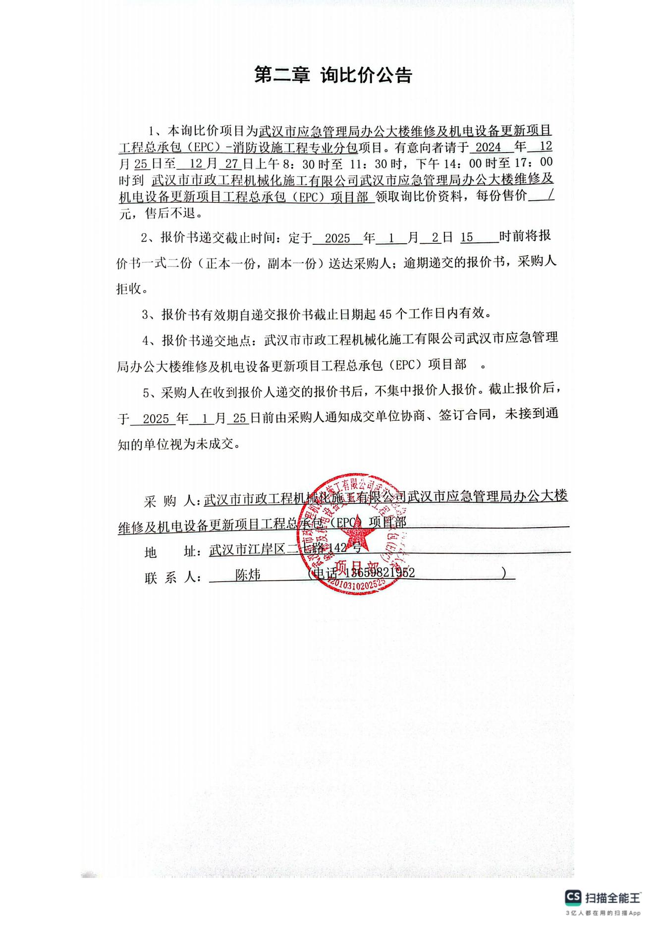 武漢市應(yīng)急管理局辦公大樓維修及機(jī)電設(shè)備更新項(xiàng)目工程總承包(EPC)-消防設(shè)施工程專業(yè)分包詢價(jià)公告