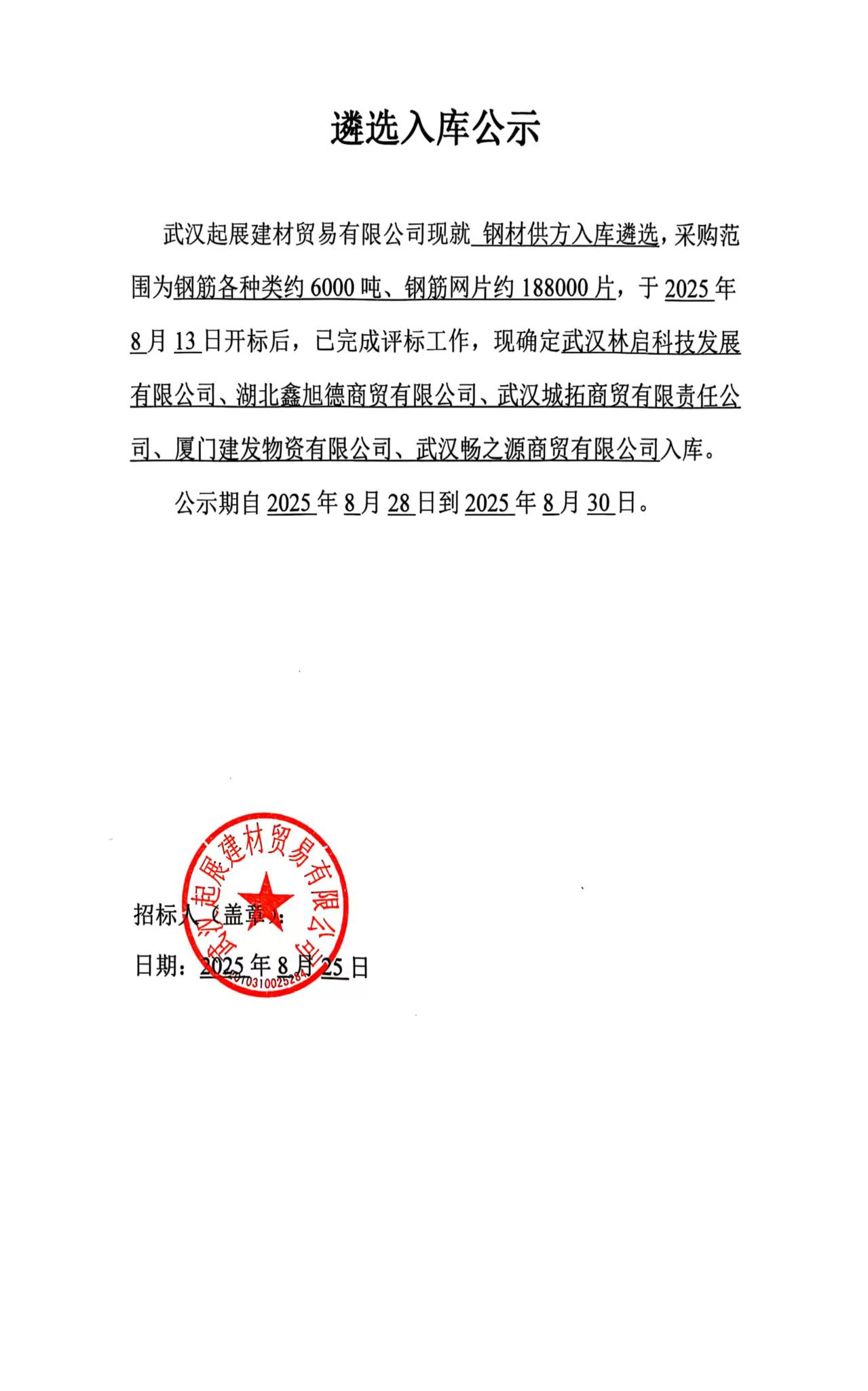 武漢起展建材貿(mào)易有限公司鋼材供方遴選入庫公示